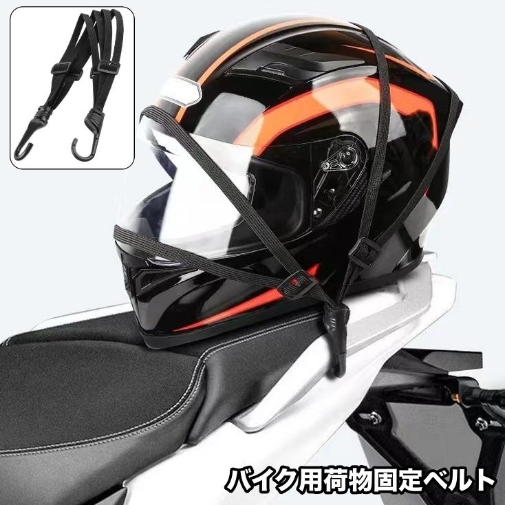 加えて、ヘルメットホルダーがないバイクや、より高い安定性を求める場合には「ゴムネット」や「ラゲッジコード」を使ってタンデムシートの上に固定する方法も有効です。